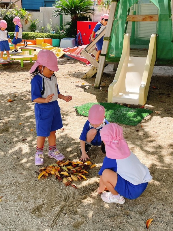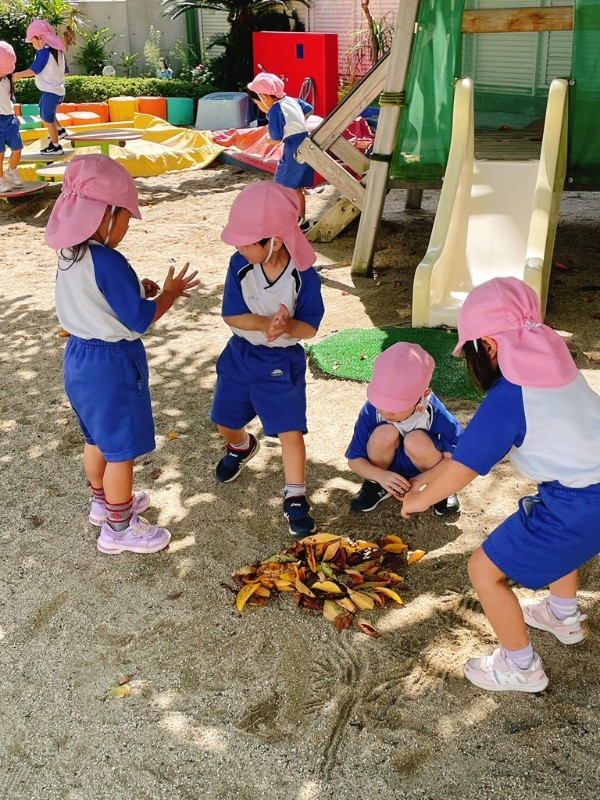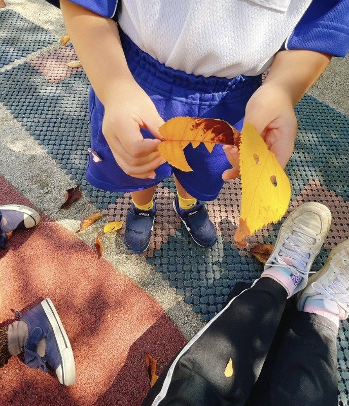 ギャラリー詳細 保育の様子Album 年少さん 落ち葉あそび 2025/10/08 園庭で落ち葉を集めたら焼き芋みたい! 落ち葉で焼き芋ごっこが始まりました お化け葉っぱも見つけたよ まだまだ暑いけど小さい秋を見つけました << 一覧に戻る