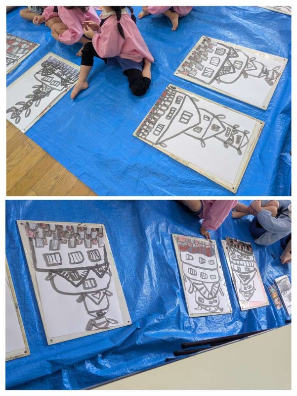 ギャラリー詳細 保育の様子Album 年長さん お絵描き「大阪城」 2025/11/21 年長組では各クラス大阪城のお絵描きをしています パステルカラーを削って粉にして指で色付けをしているクラスや 和柄の和紙を細かく切ったもので石垣に色付けをしてるクラス 墨で力強いお城の枠組みを描いているクラス それぞれいろんな取り組み方で、描いている大阪城 どんな仕上がりになるのか楽しみです << 一覧に戻る