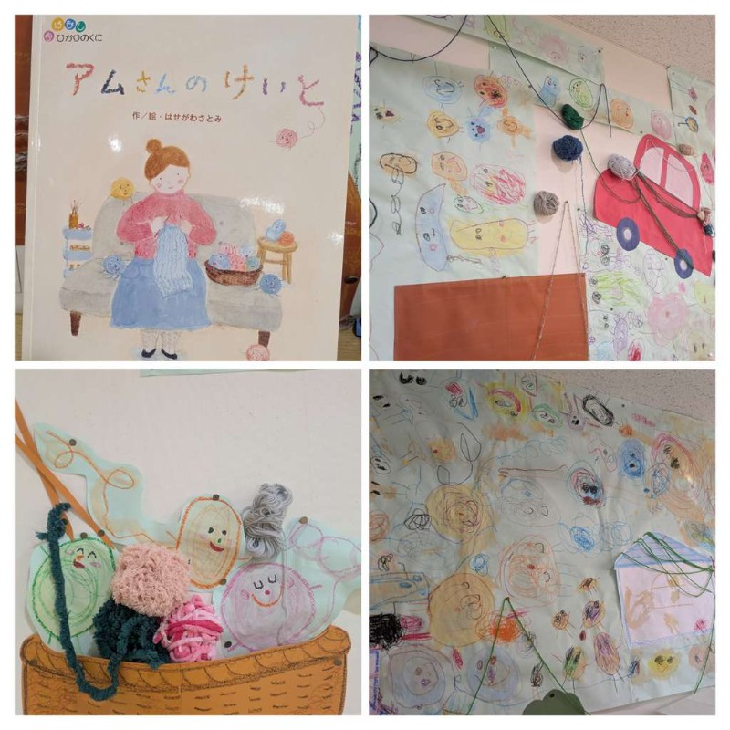 ギャラリー詳細 保育の様子Album 年少さん 壁面絵画 2025/12/12 年少さんクラスのお部屋 「アムさんのけいと」という絵本がテーマの壁面 アムさんお店から飛び出した毛糸たち、みんなが描いた町にもあそびにきたようすがとてもかわいいです << 一覧に戻る
