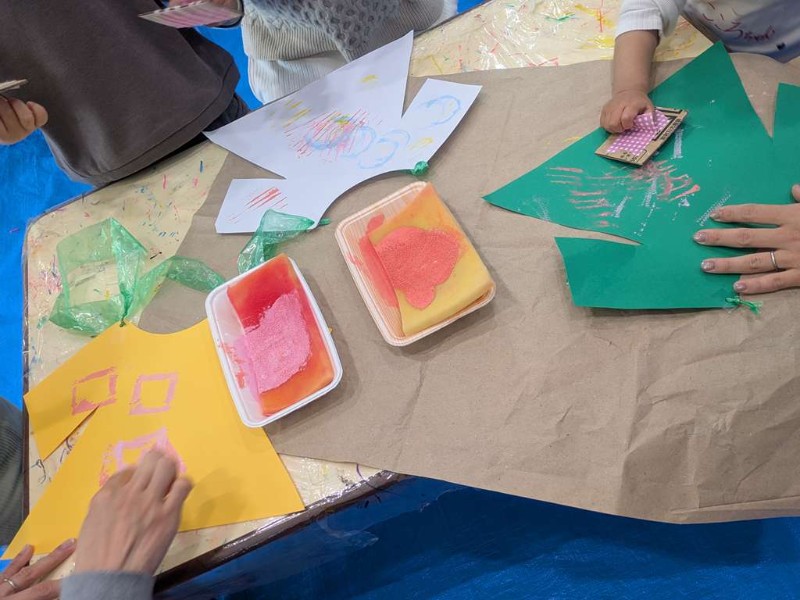 ギャラリー詳細 保育の様子Album 子育て支援事業 「ぷちひよこルーム」の様子 2026/01/21 今日は子育て支援事業ぷちひよこルーム「親子でつくろ」の日でした 今日は暖かい帽子とセーターを作ってみました 両面テープをはった帽子にぺたぺたと毛糸を貼ってカラフルでかわいい帽子とペタペタスタンプを押してできたセーター どちらも冬の必需品ですね 来月もぷちひよこルームでは楽しいプログラムを用意してお待ちしております。幼稚園に遊びにきてくださいね << 一覧に戻る