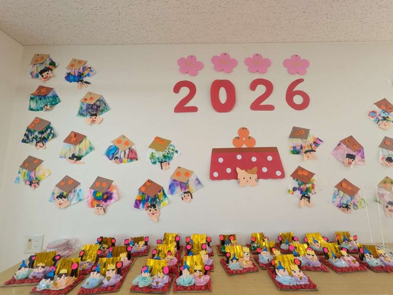 ギャラリー詳細 保育の様子Album 年長さん 制作のようす 2026/02/19 年長さんのお部屋にかわいい雛飾りができあがっていました 金の屏風の前にかわいいお顔のお雛様お内裏様が座っています 壁面ではこたつでミカンを食べた後かな?寝そべっているかわいいお顔が勢ぞろいして見ているだけで暖かかくなります << 一覧に戻る